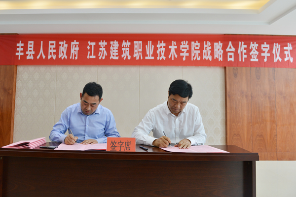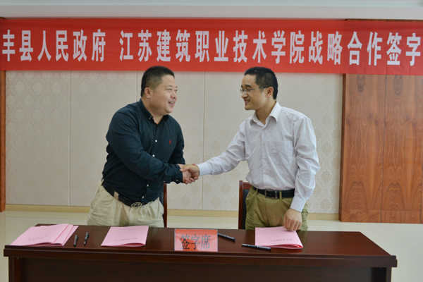 5月23日,我校与丰县人民政府在丰县中等专业学校举行了全面战略合作签字仪式。党委书记吴光林、院长孙进、副院长季翔、曾凡远,丰县县委书记王立权、常务副县长单长丰、副县长渠慎鹏等出席签字仪式。渠慎鹏主持签字仪式。
