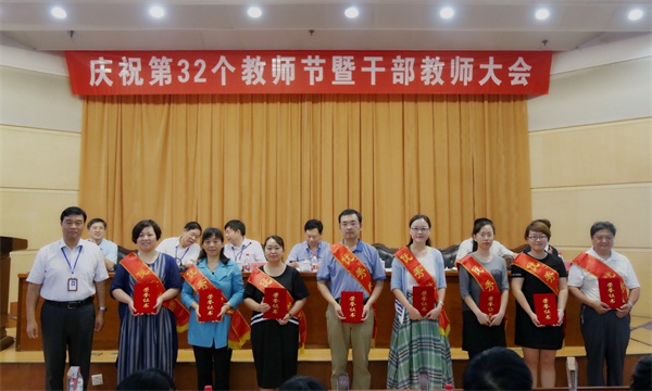 9月9日下午,我校庆祝第32个教师节暨干部教师大会在学术报告厅隆重召开。党委书记吴光林,党委副书记、院长孙进,党委副书记、纪委书记张登宏,副院长季翔、任留钦、梁惠、曾凡远,以及全体专兼职教师、全体中层干部、机关教辅部门干部参加了大会。