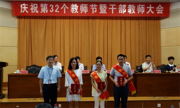 校领导吴光林、孙进、任留钦、梁惠、曾凡远分别为从教30周年教师、优秀教师、优秀教育工作者和优秀教学秘书、优秀辅导员颁奖。党委副书记张登宏主持大会。副院长季翔宣读表彰文件。教师代表张兰兰作了交流发言。(党政办公室)