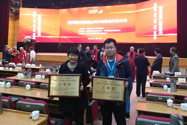 由我校作为牵头单位、能源与交通工程学院陶祥令老师主持的项目“建筑垃圾再生骨料在混凝土制品中的应用研究”参与了2016年度中国混凝土与水泥制品行业技术革新奖的申报,经过协会专家组评审、项目组答辩最终确定为技术开发类三等奖。中国混凝土与水泥制品行业协会在颁奖期间对我校和江苏中联铸本集团合作项目进行介绍,并对双方研发成果进行了推介。