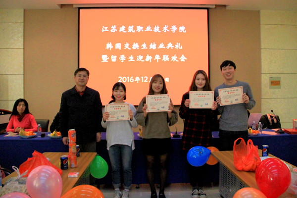 12月29日下午,我校在建筑技术馆举行韩国交换生结业典礼暨国际留学生迎新年联欢会。
