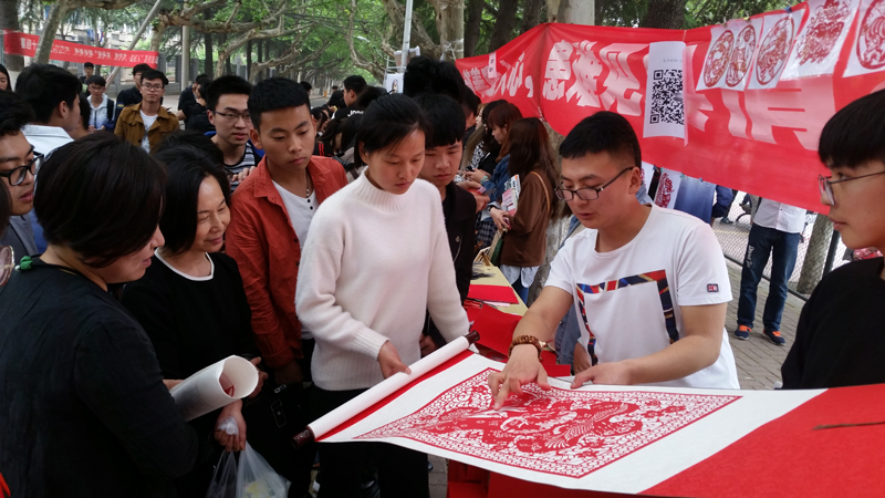 为弘扬中华优秀传统文化,加深同学们对中华传统文化的认识,感受传统文化之美,4月25日中午,传媒学院在林荫大道举办“传统文化在我身边”传统艺术作品展示与交流活动。