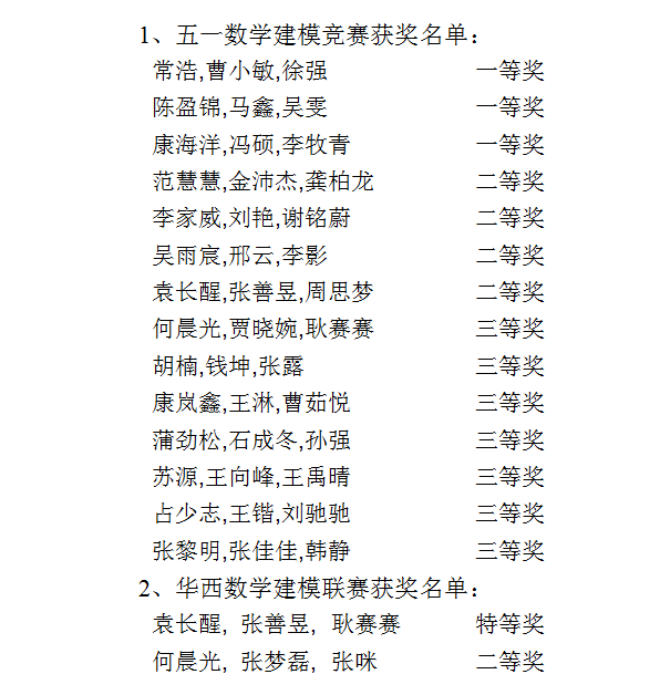 另悉,我校参加2017年“华西数学建模联赛”的两支代表队全部获奖,斩获特等奖1项、二等奖1项。(基础部 封心拥)