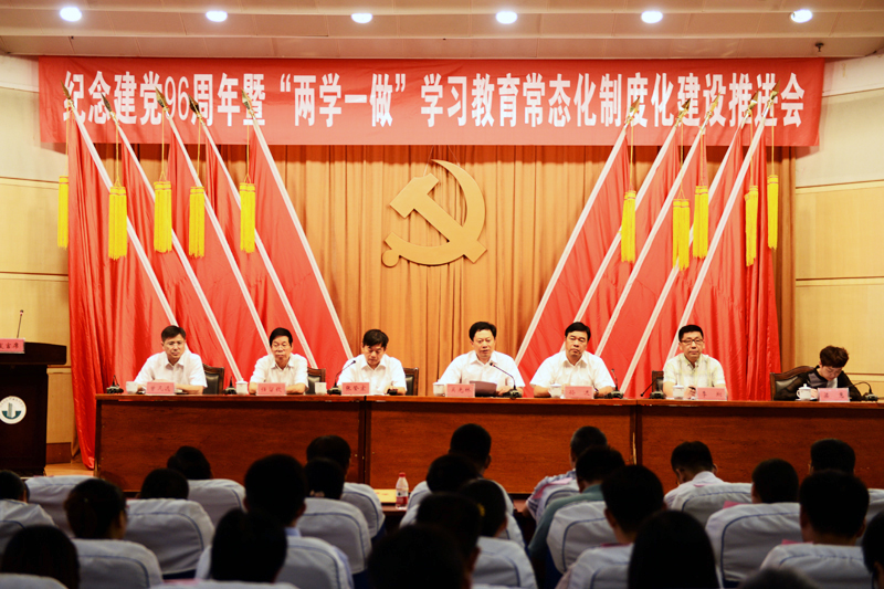6月30日下午,我校庆祝中国共产党成立96周年暨“两学一做”学习教育常态化制度化建设推进会在学术报告厅隆重举行。校领导吴光林、孙进、张登宏、季翔、任留钦、梁惠、曾凡远出席了大会。全校教职工党员,非党员中层干部,离退休、学生党员代表参加了会议。院长、党委副书记孙进主持了大会。