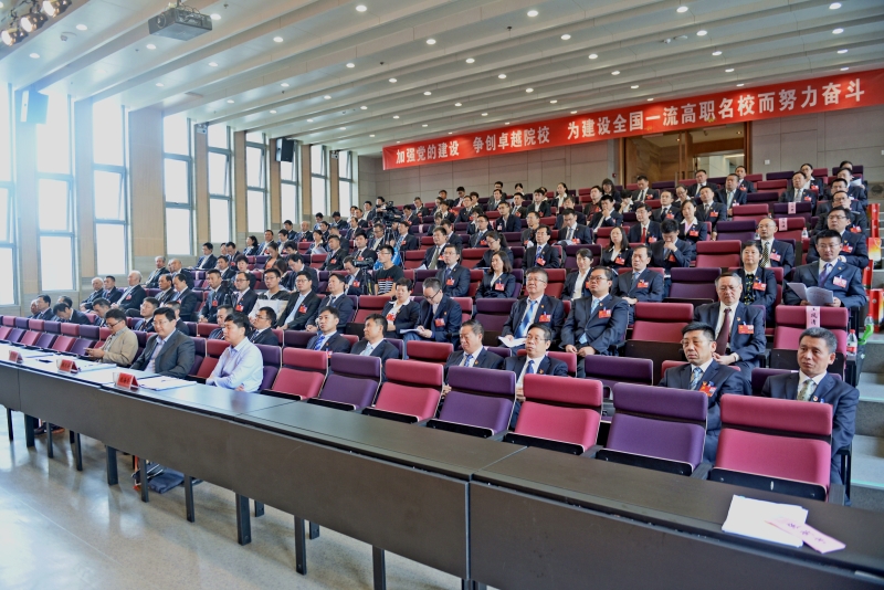 党委书记孙进向大会作题为《加强党的建设,争创卓越院校,为建设全国一流高职名校而努力奋斗》的工作报告。报告分为三个部分:一、五年来的主要成就与基本经验;二、今后五年的总体思路、主要目标和重点任务;三、全面加强党的建设,引领学校事业科学发展。