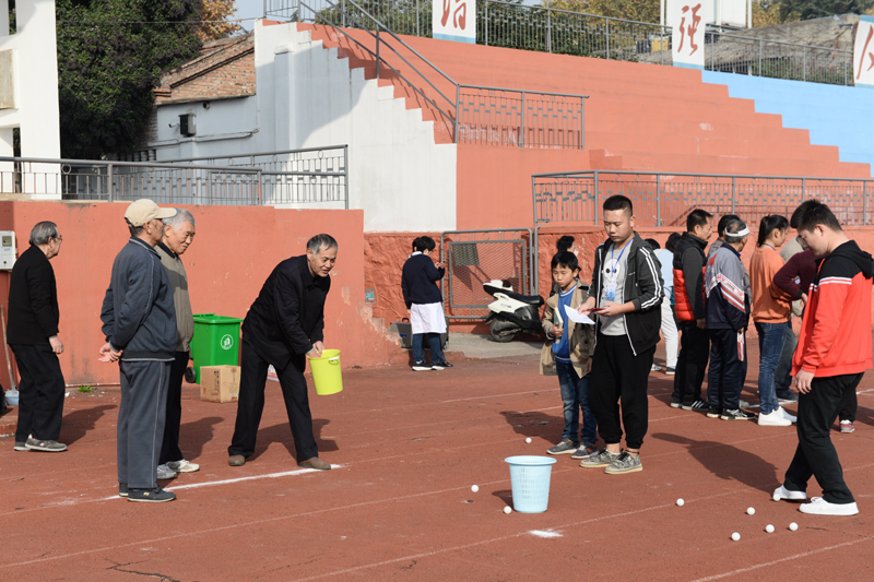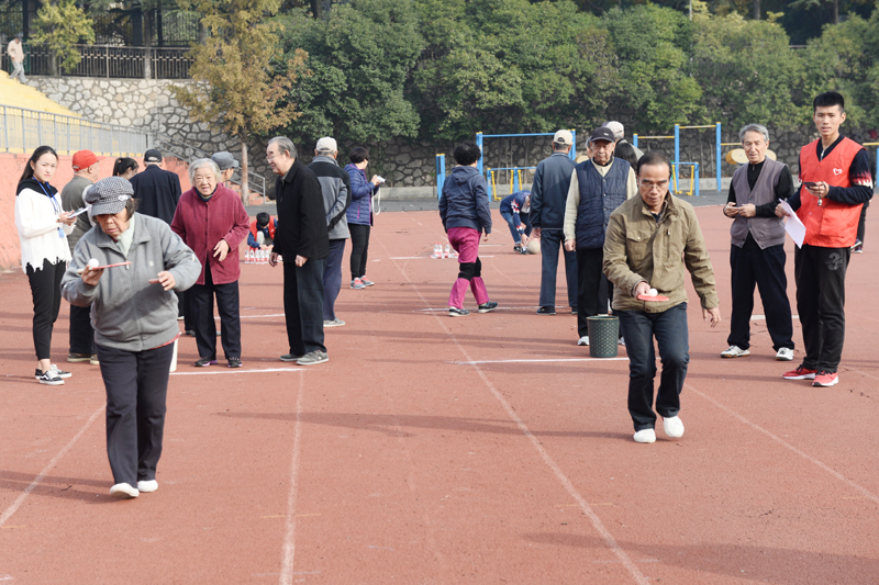 11月7日上午,我校第四届离退休教职工趣味运动会在东操场如期举行,全校120余名离退休老同志参加了持球竞走、排式保龄、盲人击鼓、定点投球、足球射门、飞镖比赛、手杖推球、定点拍球、目标定向、赶“猪”进栏等10个项目的趣味竞赛。