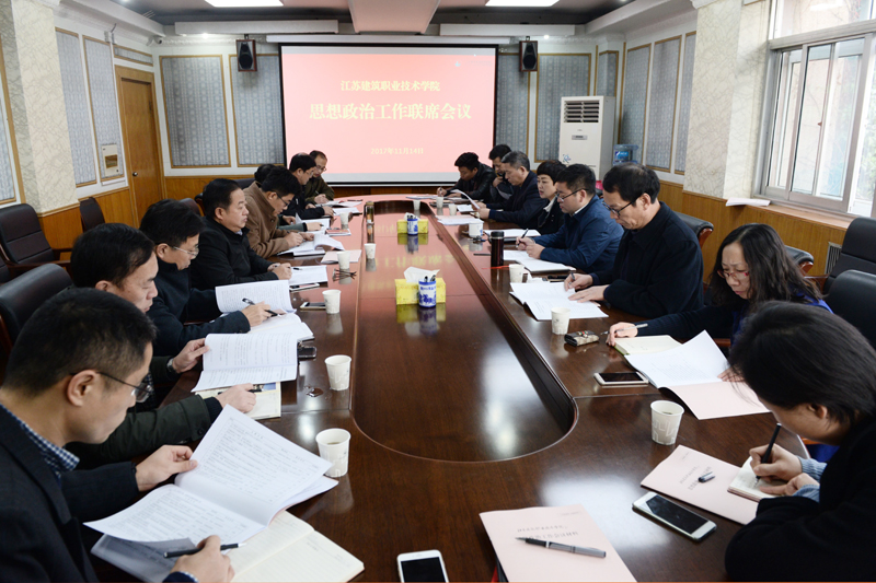 11月14日上午,学校在第一会议室召开思想政治工作联席会议,会议由党委副书记梁惠主持。党委组织部、党委宣传部、纪委、党委办公室、学生工作部、保卫部、教务处、人事处、科技与校企合作处、财务处、招生与就业处、工会、团委、思想政治理论课教学研究部、后勤党总支等单位负责人参加会议。