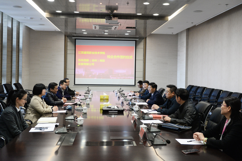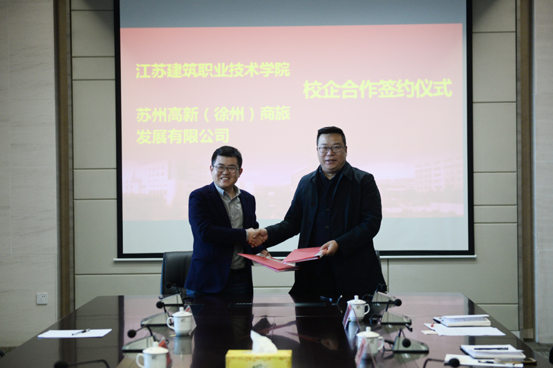 签字仪式上,沈士德介绍了我校办学情况,他说,苏州高新作为一家上市公司,在服务徐州、建设淮海经济区中心城市的平台上,与我校具有广阔的合作前景,他希望双方在实习就业、社会培训等方面,继续开展深入的校企合作。金宗韬对我校办学成就表示赞赏,他对公司运营情况和下一步发展战略作了介绍,期待通过校企合作实现共赢发展。李杰、刘海波签署了合作协议。