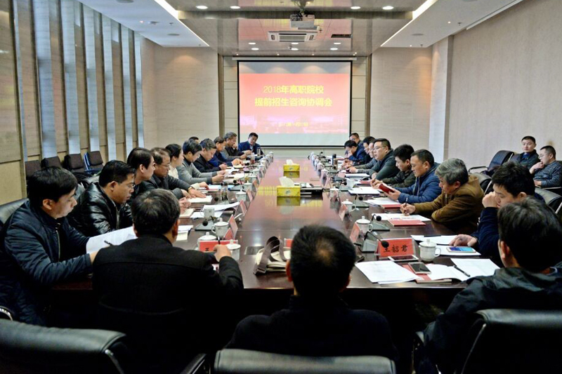 11月22日下午,江苏省2018年高职院校提前招生咨询会协调会在我校图书馆第一会议室顺利召开。江苏省高校招生就业指导服务中心胡建平书记、蒋晨阳部长,我校刘海波副院长出席会议,徐州市、宿迁市、连云港市等市、县、区招办负责人及提前招生咨询会承办学校负责人参加了会议。