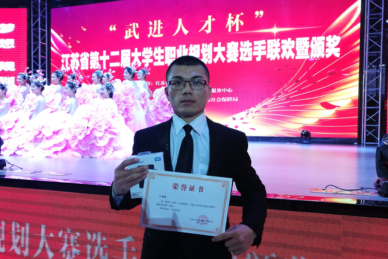 11月28日,在“武进人才杯”江苏省第十二届大学生职业规划大赛总决赛中,我校机电学院电气自动化专业16级学生王国岩荣获一等奖。