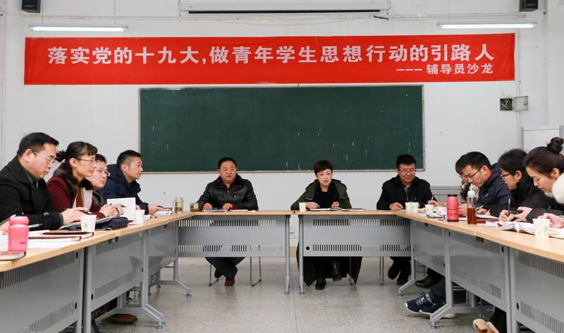 各二级学院专职辅导员围绕如何贯彻落实党的十九大精神,结合实际工作交流发言。大家一致认为,辅导员要牢固树立责任意识,担负起使命,要不断学习,增强自身理论素养。