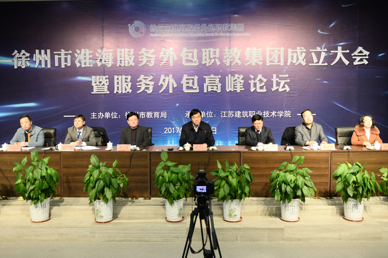 12月15日,徐州市淮海服务外包职教集团成立大会暨服务外包高峰论坛在我校图书馆报告厅举办。我校党委书记孙进、院长沈士德、副院长曾凡远,徐州市教育局副局长李清、徐州市商贸局副局长周李明、江苏省服务外包协会副会长杨亚兵出席大会,徐州市民政局、徐州市服务外包协会相关处室负责同志以及淮海经济区兄弟院校领导、徐州各中职学校领导、合作企业代表,相关专业教师和学生代表200余人参加成立大会。孙进书记与李清副局长共同为职教集团揭牌。曾凡远主持成立大会。