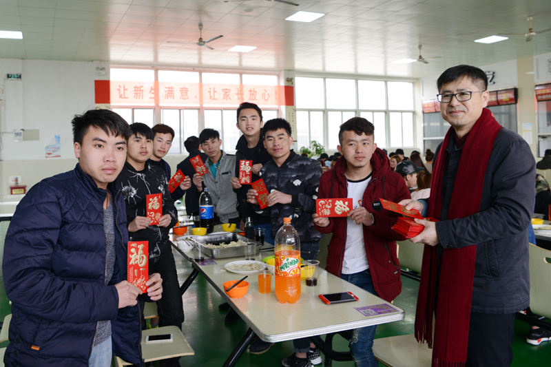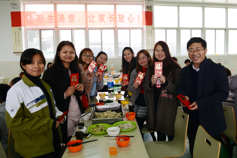 席间,曾凡远副院长发表新年贺词,祝愿同学们新年快乐、学业有成。沈士德、曾凡远为留学生们发红包,送上新春祝福,并亲切询问留学生寒假期间在校学习、生活情况。学校领导与老师们的关心祝福让远离家乡的留学生们倍感节日的温暖,大家一起吃饺子,学说拜年的祝福话,合影留念,体验中国春节文化,感受浓浓的中国“年味儿”。(国际学院 张雨婷)