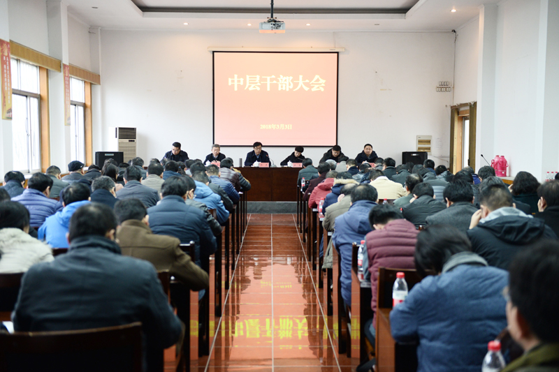 3月3日上午,学校在党校教室召开新学期全体中层干部大会,传达上级有关会议精神、安排部署2018年重点工作。校领导孙进、梁惠、魏勇、曾凡远、刘海波、蒋兆峰出席,全体中层干部参会。
