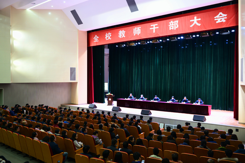 3月3日下午,新学期全校教师干部大会在会堂举行。校领导孙进、梁惠、魏勇、曾凡远、刘海波、蒋兆峰出席会议,全校教师干部参加会议。