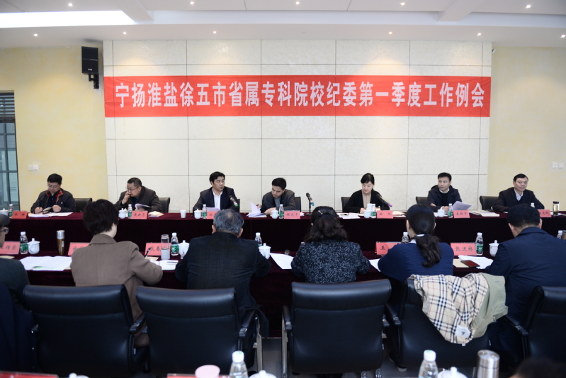3月15日,省纪委七室主办的宁扬淮盐徐五市省属专科院校纪委第一季度工作例会在我校召开。省纪委七室副主任杜龙干、副主任徐燕、副处级纪检监察员姜锡军、主任科员鹿新志,市纪委四室主任康建祝、副主任朱琳等领导出席会议。省纪委七室徐燕副主任主持会议。校党委书记孙进出席会议并致辞。南京、扬州、淮安、盐城、徐州五市13所高校纪委书记、副书记和专职纪检员近40人参加会议。