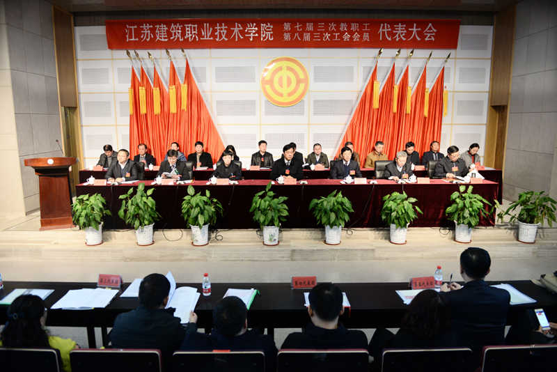 3月17日,我校第七届三次教代会暨第八届三次工代会在图书馆报告厅召开。大会主要任务是进一步凝聚全校师生智慧,全面贯彻六大发展战略,认真落实2018年学校各项工作任务,扎实推进江苏省高水平高职院校建设。全体校领导及教代会代表参加了会议,7名特邀人员、23名列席人员列席会议。