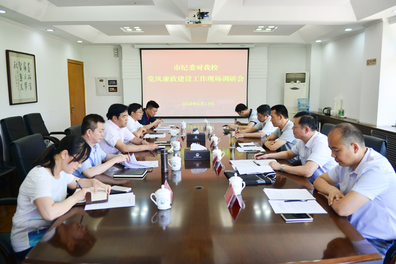 孙进代表学校对市纪委调研组表示欢迎,并简要介绍了学校办学基本情况和社会影响力、第二次党代会以来学校发展战略、校党委推动全面从严治党加强系列制度建设等方面的探索做法和取得的成效。魏勇介绍了学校党风廉政建设工作总体情况、贯彻落实中央纪委二次全会和省纪委三次全会精神情况、落实中央八项规定实施细则情况和我校纪检监察工作机制建设情况。