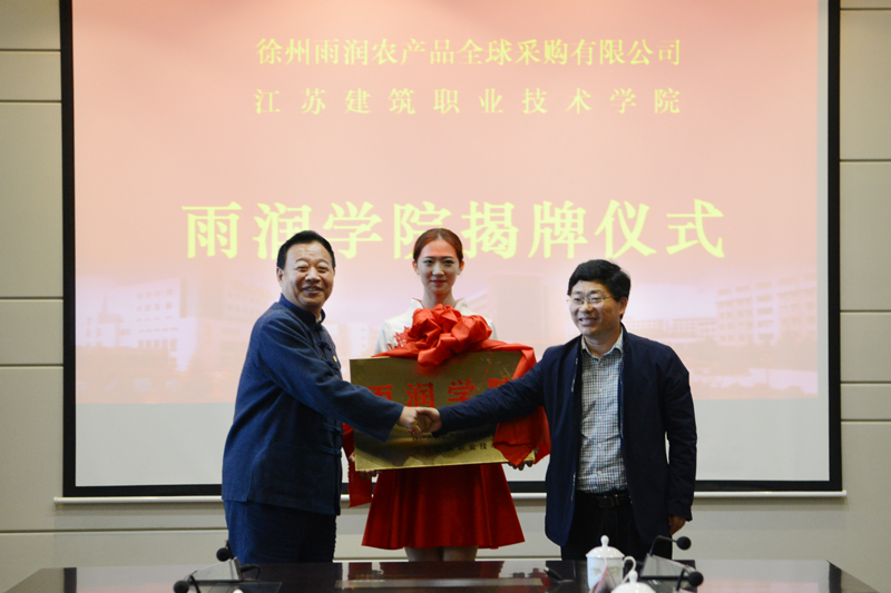 4月20日,我校与徐州雨润农产品全球采购有限公司校企共建雨润学院成立揭牌仪式在图书馆会议室举行。我校院长沈士德、江苏雨润农产品集团副总裁兼徐州项目指挥长杨军、徐州雨润公司总经理助理赵恒建及我校相关部门、二级学院负责人出席揭牌仪式。