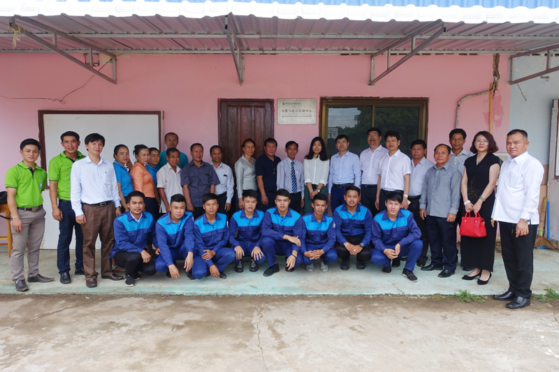 江苏建筑职业技术学院技能与语言培训中心在老挝万象省职业技术学院揭牌后合影