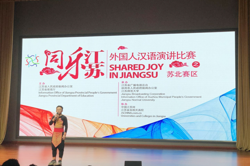 主办方通过“同乐江苏”外国人汉语演讲比赛,让更多的外国人感受中华文化的魅力,今年的比赛以“我的中国故事”为主题,来自苏北地区9所本科、高职院校的18名选手参赛,每位选手进行3分钟演讲。本次比赛由知名专家、学者及主持人担任评委,根据演讲内容、语言表达、流利程度、演讲技巧和仪表形象等五个方面对选手进行打分,经过激烈角逐,我校王思发挥出色,给评委和观众留下了深刻的印象。他提到的生活学习、“撒狗粮”和狗无关等趣事引发阵阵笑声和掌声,演讲提到自己要学好建筑专业回老挝实现自己的“中国梦”,也吸引了多家媒体对这个外国小伙子“中国梦”的深度挖掘。