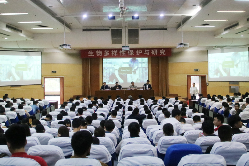 杨国栋博士以生物多样性保护与研究为题,从生物多样性及其保护、生物多样性的变化、生物多样性监测、生物多样性调查等四个方面,向我校师生介绍了生物多样性的概念、生物多样性保护的意义,威胁生物多样性的主要因素,生物多样性变化、监测,以及亲身经历的典型森林固定样地和行政区域的种质资源和生物多样性本底调查成果。