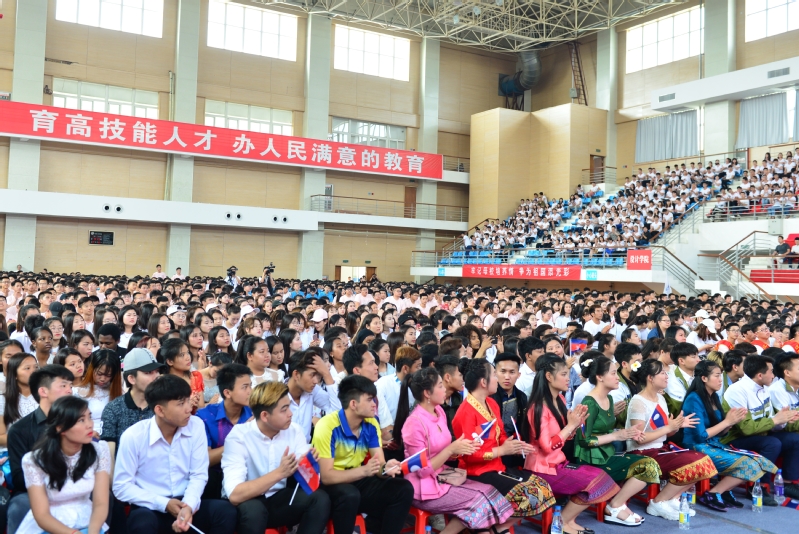 6月8日上午,我校2018届毕业典礼在体育馆隆重举行,学校党委书记孙进,院长沈士德,党委副书记梁惠,纪委书记魏勇,副院长曾凡远、刘海波、蒋兆峰出席典礼。老挝教育与体育部技术与职业教育司副司长本朋、行政处副处长本亚里,老挝万象省技术学院校长通崂,老挝老德技术学院副校长康可欧,老挝巴巴萨技术学院副校长坎姆坡应邀出席典礼。毕业典礼由党委副书记梁惠主持。