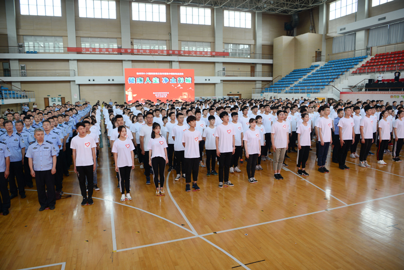 本次活动由市禁毒委主办,我校协办,全市禁毒战线代表、禁毒志愿者代表800余人参加活动。活动开始前,我校学生表演了龙狮舞、啦啦操、《歌唱祖国》、禁毒主题曲《生命》等节目,展示了青春学子风采。