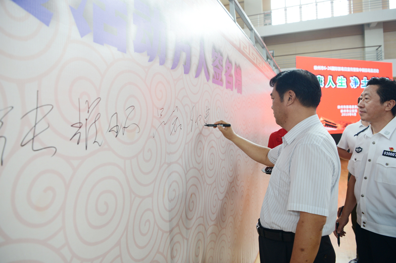 活动中,韩冬梅在讲话中简单总结了近年来徐州禁毒战线的显著成果,指出开展集中教育和销毁毒品行动的重大意义,她希望通过全社会共同努力,提升禁毒工作成效,消除毒品危害,确保社会治安稳定、人民安居乐业。与会人员集中观看了禁毒宣传片和毒品集中销毁现场直播,依次在“健康人生,净土彭城”万人签名墙上签名,并参观了禁毒书画摄影展。