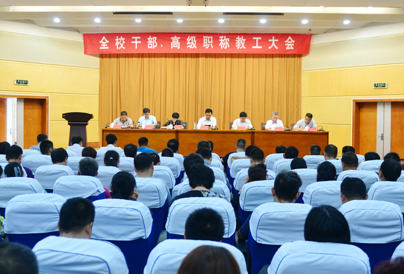 为更好地总结上半年学校办学发展情况,安排部署秋学期各项重点工作,全校干部、高级职称教工大会8月31日下午在学术报告厅召开。校领导孙进、沈士德、梁惠、魏勇、曾凡远、刘海波、蒋兆峰以及330余名干部、高职称教工参加了大会。党委副书记梁惠主持会议。
