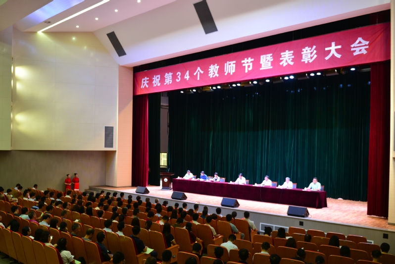 9月10日下午,学校庆祝第34个教师节暨表彰大会在会堂隆重召开。党委书记孙进,院长沈士德,党委副书记梁惠,纪委书记魏勇,副院长曾凡远、刘海波、蒋兆峰,以及全体中层干部、专兼职教师、机关教辅管理干部、学生代表1000余人参加大会。