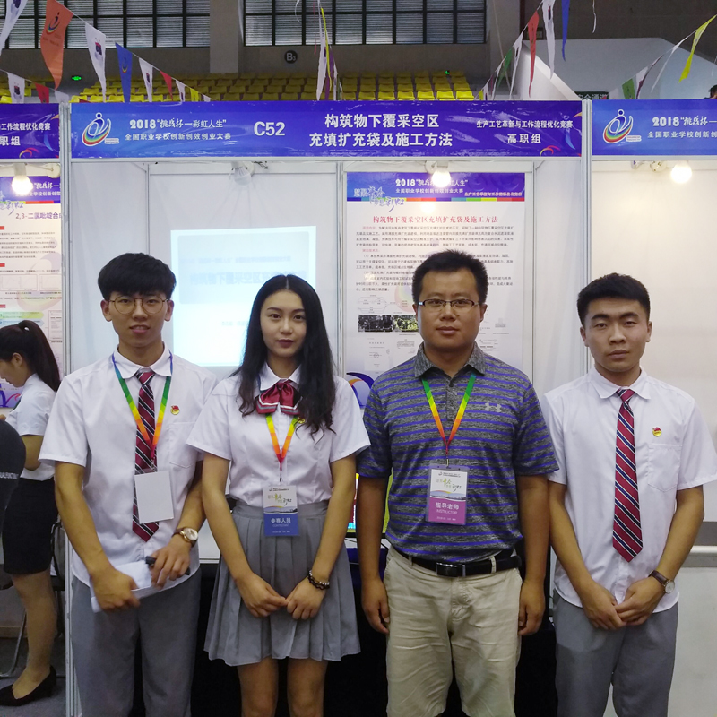 近日,团中央公布了2018“挑战杯——彩虹人生”全国职业学校创新创效创业大赛决赛成绩,由我校陶祥令老师指导,李志毅、朱新航、薛涵榕、袁帅、李子成、王刚六名同学共同合作的项目《构筑物下覆采空区充填扩充袋及施工方法》获一等奖。