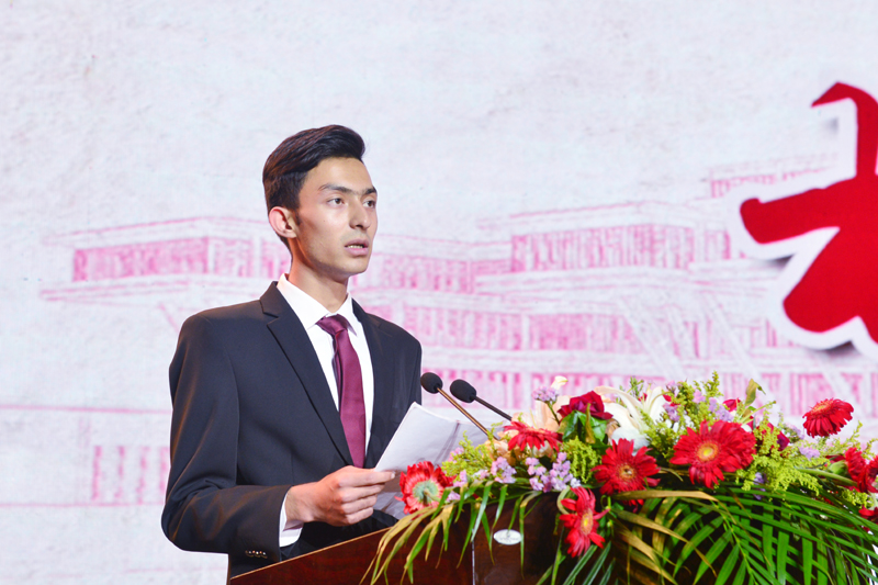 新生代表、能源学院路桥18-3班加苏尔∙ 吾拉木同学发言