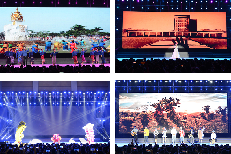 晚会上,学生艺术团、学生龙狮协会、教师代表和留学生代表带来的舞蹈《春风又绿》、民乐合奏《水龙吟》、舞组合《建院一家亲》、醒狮表演《金狮送福》、歌曲组合《新生代》、歌曲《好大一棵树》、歌舞组合《情暖建院》等节目,异彩纷呈、赏心悦目,为典礼增添了一笔浓厚的欢庆氛围。