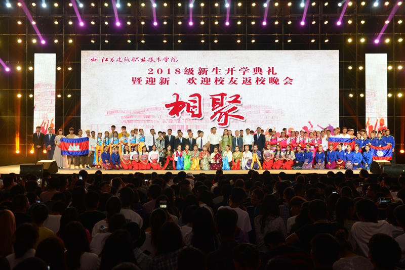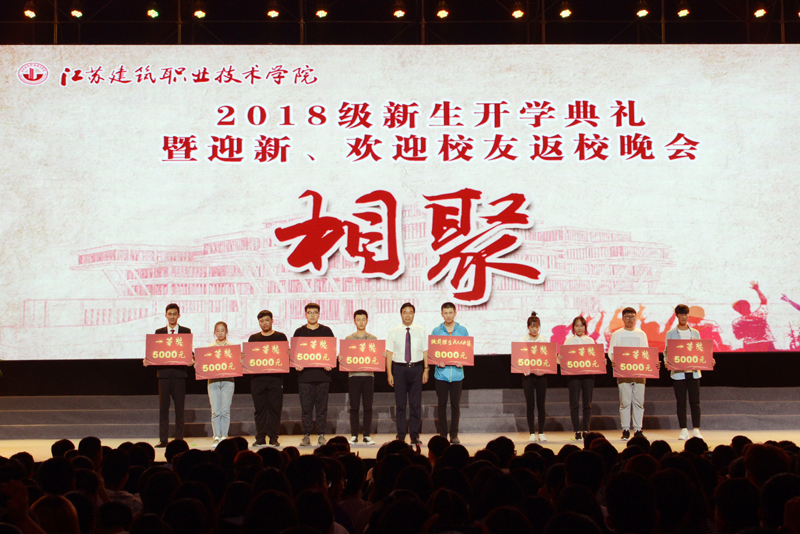 9月22日晚,2018级新生开学典礼暨迎新、欢迎校友返校晚会在校体育馆隆重举行。校领导孙进、沈士德、梁惠、魏勇、曾凡远、刘海波、蒋兆峰,外宾老挝老德技术学院校长KHAMSAVAY先生、老挝万象省技术学院副校长BOUNTA先生、老挝万象省技术学院副校长THONGSA先生、柬埔寨万达学院副校长LINNA女士,学校相关职能部门负责人、各学院党政领导班子、新生班专兼职辅导员、学生家长代表、4545名新生以及240名88届校友一同出席观看了晚会。党委书记孙进向获得高分奖励的新生代表颁奖,院长沈士德发表讲话,党委副书记梁惠主持典礼,纪委书记魏勇宣读高分新生表彰奖励文件。