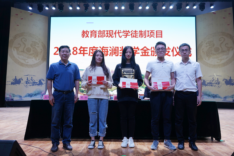 据悉,我校与海澜集团共建的教育部现代学徒制试点项目已经实施三年,为了促进现代学徒制项目更好地发展,2017年,我校与海澜集团商定设立海澜奖学金项目,用于表彰表现突出、成绩优秀的海澜学徒生。
