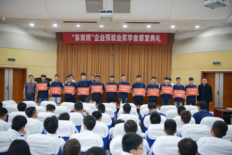 9月27日下午,江苏东南工程咨询有限公司李爱国、葛启仁副总经理一行四人来到我校,为能源与交通工程学院路桥专业16级东南订单班23名学生颁发企业预就业奖学金。我校副院长刘海波出席表彰大会,为企业兼职教师颁发聘书,并与企业领导共同为获得奖学金学生颁发奖学金。