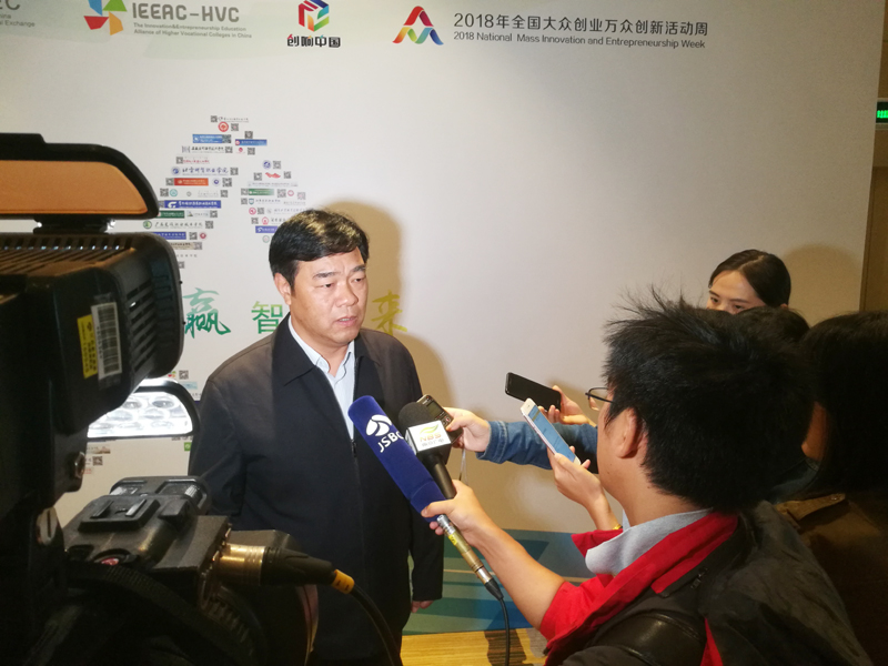 会议期间,孙进书记接受了江苏教育电视台、江苏新闻广播电台等新闻媒体的采访,他就我校以科技创新平台为依托,协同培养多层次技术技能型创新创业人才模式,以及我校积淀形成的军校文化、煤炭文化、建筑文化“三个文化”相交融的校园文化建设状况作了简要介绍。