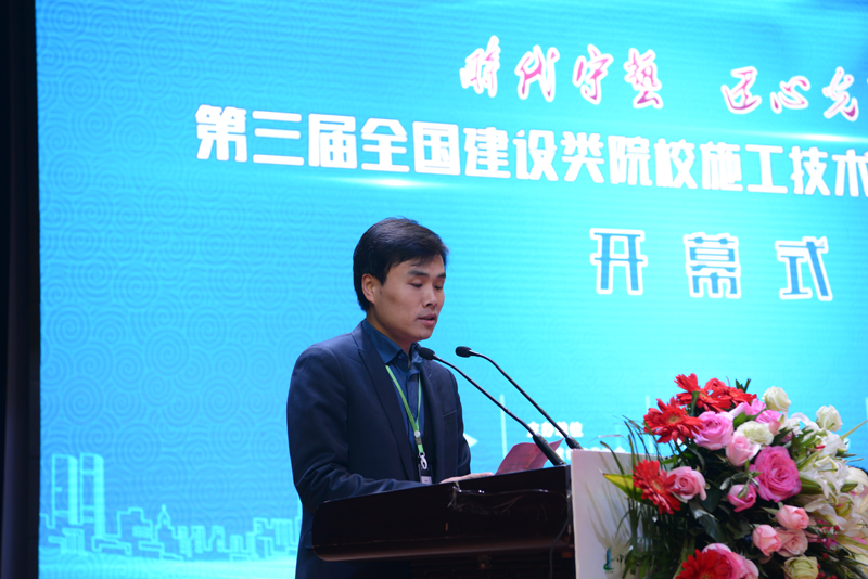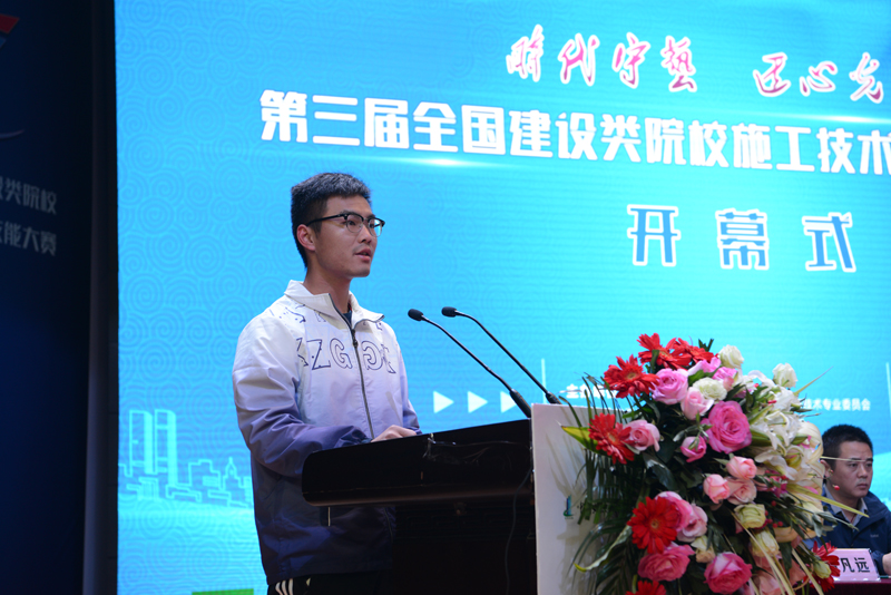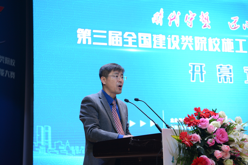 开幕式上,王凤君副理事长在讲话中强调了举办大赛的目的意义,希望全国建设类院校学子苦练技能、奋发成才,成为促进社会可持续发展的应用型人才,同时也阐述了建设类院校发展所面临的机遇挑战和对策建议。最后他宣布比赛开赛。