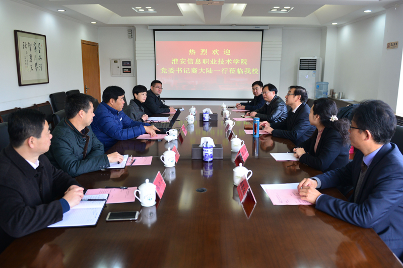 11月23日,淮安信息职业技术学院党委书记裔大陆一行来我校就办学经验进行专题调研。学校党委书记孙进、党委副书记梁惠与裔大陆书记一行进行了深入交流。党委组织部、党委宣传部、党政办公室等相关部门负责同志参加了座谈会。