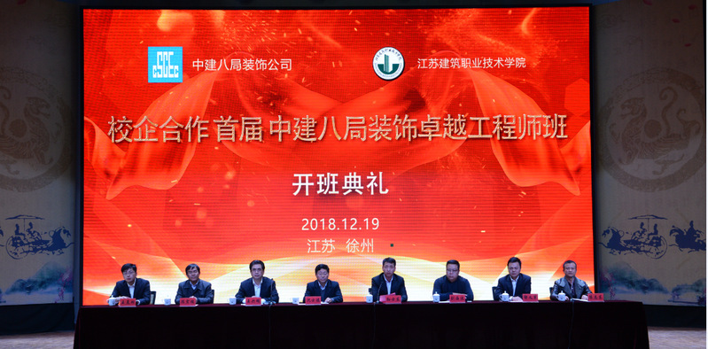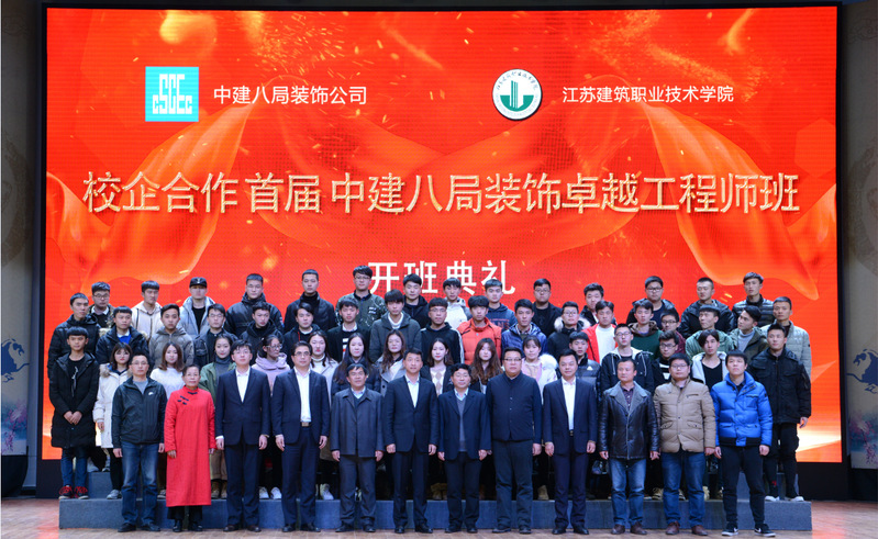 12月19日上午,我校首届“中建八局装饰公司卓越工程师班”开班典礼在学校会堂举行。我校沈士德院长、刘海波副院长,中建八局装饰公司党委书记、董事长孙士东及相关部门负责人,建筑装饰学院领导、教师代表、52名订单班学员及部分学生代表参加了开班仪式。