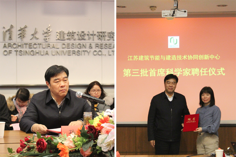 党委书记孙进在致辞中高度赞扬了清华大学的国际学术地位和优秀校园文化,感谢清华大学建筑学院、建筑设计研究院对协同创新中心的大力支持。他介绍了我校“六大发展战略”以及在高水平院校创建、专业建设和科技创新等方面取得的成果。孙进说,协同创新中心作为学校重要的科技创新平台,集聚了高层次人才,组建了高水平团队,取得了一批高水平研究成果。他希望中心深化协同创新机制,形成更多高水平成果,培养更多高质量人才,为区域发展和产业转型升级做出更大的贡献。孙进书记还为中国矿业大学土木学院院长叶继红教授、江苏建筑职业技术学院副院长刘海波教授等中心第三批首席科学家颁发了聘书。