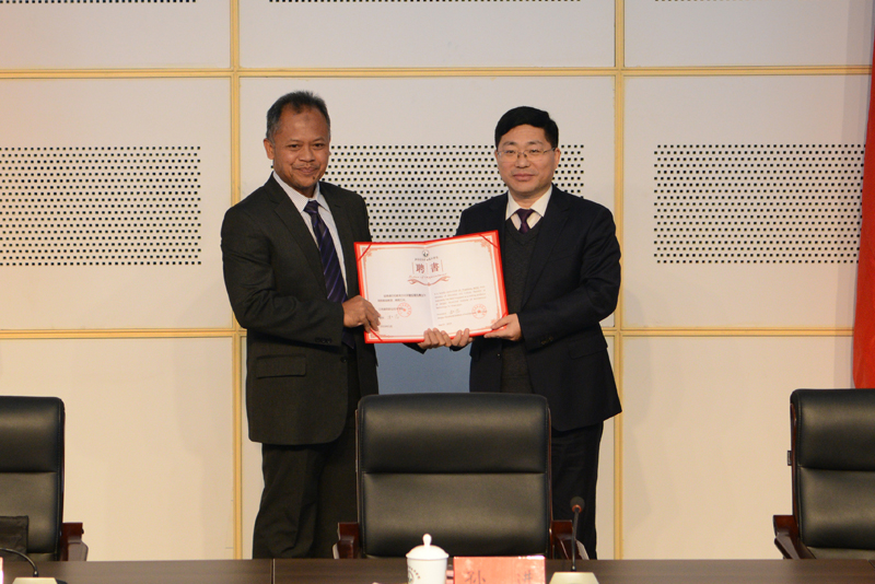 典礼过程中,沈士德代表中方同印尼方代表普拉普托博士互换了表达祝福的纪念品,并为其个人颁发了客座教授聘书。