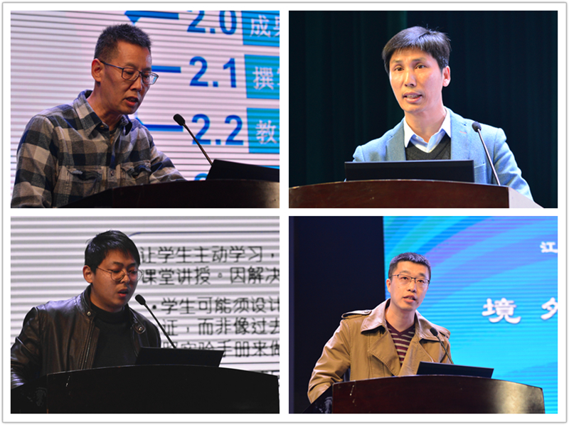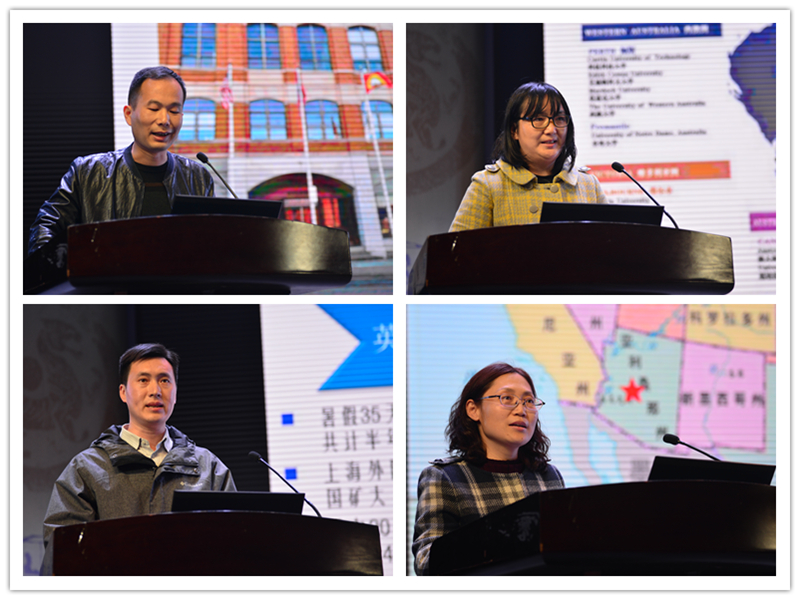 曹洪吉等3名教师代表台湾建国科技大学研修团队就IEET专业认证、《悉尼协议》工程教育认证规范和认证体系等内容进行专题汇报;袁涛等5位获得省政府留学基金和教育厅境外研修资助项目的教师代表围绕各自在境外研修期间的业务学习、科学研究、文化生活、成果业绩和心得体会等方面做了精彩分享。