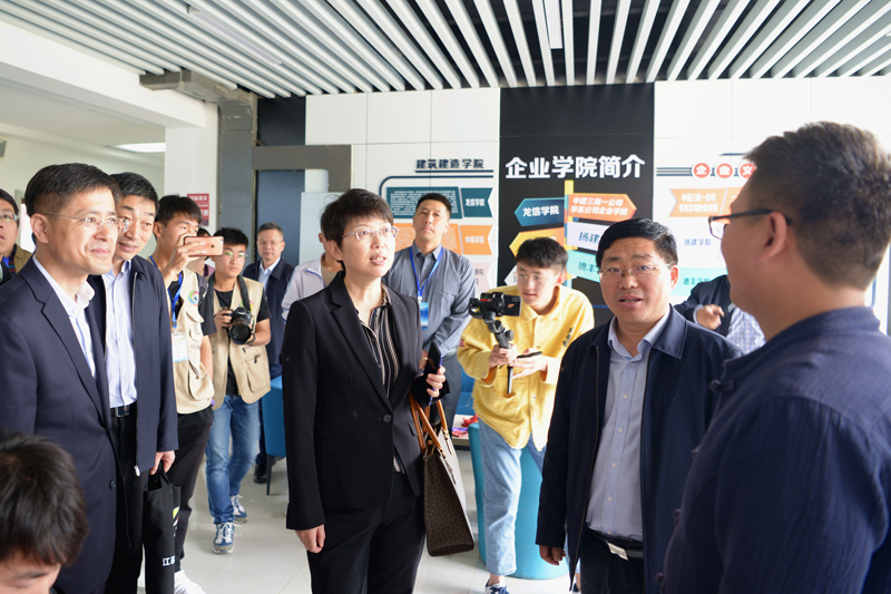 启动仪式结束后,与会领导、嘉宾一同实地参观了我校智慧教学楼、建筑技术馆、射艺场等教学实训场所,并观摩了职业院校学生技能展示。