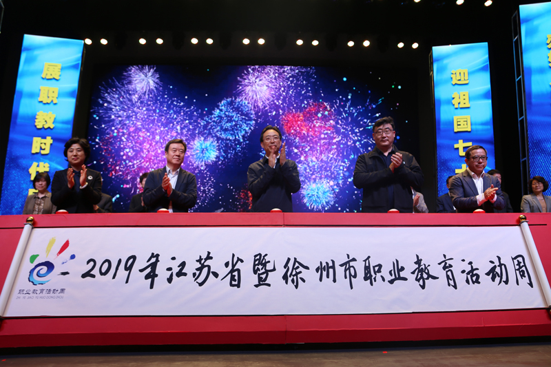 5月9日上午,2019年江苏省暨徐州市职业教育活动周启动仪式在我校会堂隆重举行。江苏省教育厅厅长葛道凯、江苏省委统战部副部长徐开信、中国有色金属工业人才中心副总经理宋凯、中国纺织服装教育学会会长倪阳生、江苏省教育厅副厅长曹玉梅、江苏省人力资源和社会保障厅副巡视员张永祎、江苏省农业农村厅副巡视员陈飞、江苏省国资委巡视员李琨、江苏省教育科技工会主席寇芳、共青团江苏省委副书记林小异、徐州市人民政府副市长李燕、徐州市教育局局长石启红、江苏联合职业技术学院党委书记夏成满、徐州工程机械集团有限公司总经理杨东升及我校党委书记孙进、院长沈士德、纪委书记魏勇、副院长曾凡远、副院长蒋兆峰等领导出席启动仪式。仪式由江苏省教育厅副厅长曹玉梅主持。