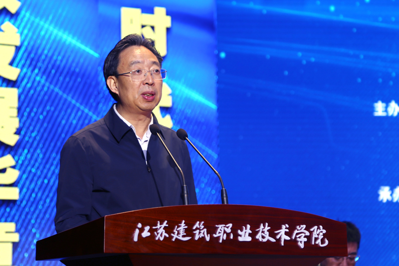 葛道凯在启动仪式上讲话。他指出江苏职业教育始终坚持以服务发展为宗旨、以促进就业为导向、以提高质量为核心、以产教融合为路径,积极构建校企协同育人新机制,走出了一条符合省情的职教融合发展之路。他强调,江苏职业教育将以习近平新时代中国特色社会主义思想为指导,凝神聚力、深耕细作,推动江苏职业教育沿着高质量发展方向不断前进。他认为江苏职业教育未来有3个发展方向:一是坚定不移走产教融合发展道路;二是聚精会神提高职业教育质量;三是持之以恒提升社会服务能力。新时代江苏职业教育大有可为,要传唱江苏职教好声音,讲述江苏职教好故事。