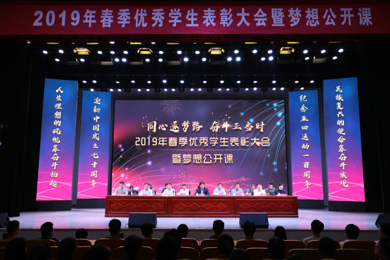 5月14日下午,2019年春季优秀学生表彰大会暨梦想公开课在会堂隆重举行,校党委书记孙进教授出席大会,相关职能部门负责人,二级学院党总支副书记和分团委书记,受表彰的先进集体和优秀个人及师生代表参会。