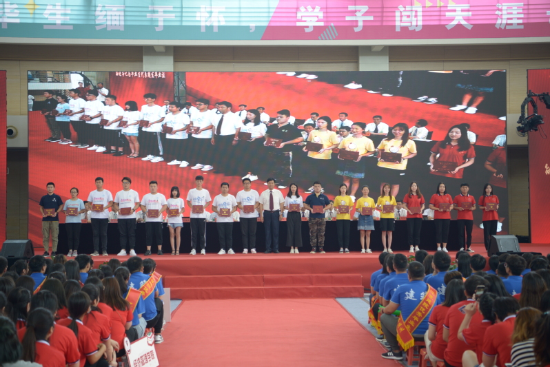 典礼在我校师生共同创作完成的《建院英雄》、《如若初见、不说再见》视频播放中拉开了帷幕。孙进为毕业生代表颁发毕业证书,沈士德致辞,魏勇为优秀毕业生代表颁发荣誉证书,曾凡远为留学生代表颁发毕业证书,蒋兆峰宣读了《关于准予2019届3995名学生毕(结)业的决定》、《关于准予2019届45名留学生毕(结)业的决定》、《关于授予沃千玄等170名同学2019届优秀毕业生称号的决定》。