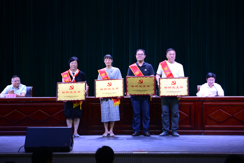会上,纪委书记魏勇宣读表彰决定。40名新党员庄严宣誓。与会领导向4个先进基层党组织、4个标杆党支部、9名优秀党务工作者和37名优秀共产党员颁奖。建筑建造学院党总支书记孙武、教务处副处长徐志鹏分别代表先进基层党组织、优秀共产党员交流发言。